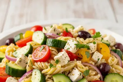 Fresh Greek Pasta Salad with Cucumber & Feta Flair